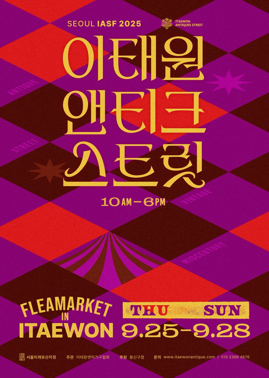 안녕하세요~ 이태원앤틱가구거리입니다 이태원앤틱가구거리에서 매년 봄,가을에 열리는 빈티지&앤틱 플리마켓 행사가 9월25일 부터 28일 까지 진행합니다. 2025년 가을에 진행되는 봄에 진행했던 이태원앤티크스트릿 플리마켓에서 한층더 업그레이드된 가을 이태원앤티크스트릿 플리마켓에 많은 관심부탁드립니다 ! 많이 놀러 오세요~~~ |